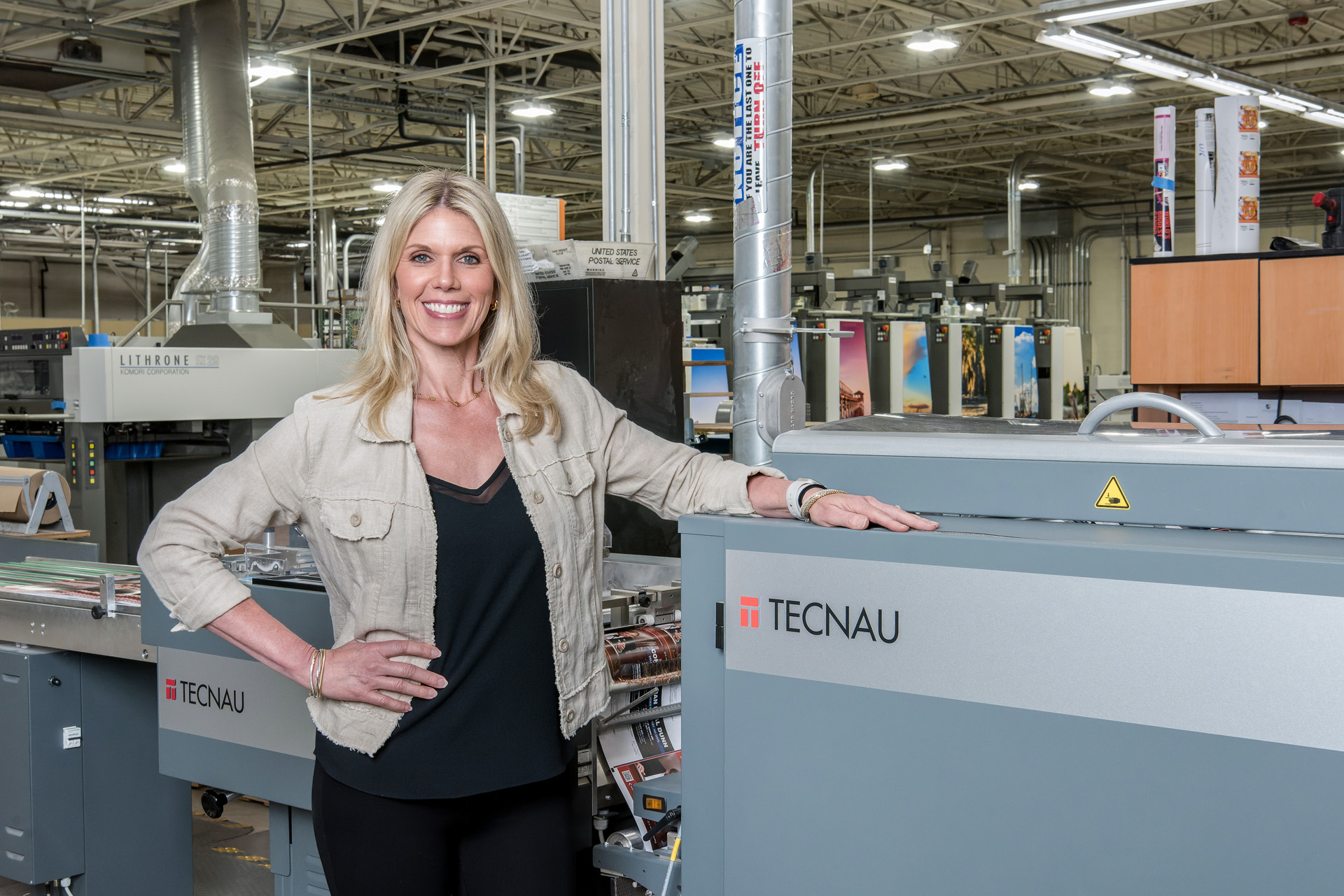 Tonya有非常具體的要求,尤其是針對(duì)博彩行業(yè)?!翱蛻?hù)追求高覆蓋率的滿(mǎn)版印刷,所以我們必須確保印刷品不能有白邊?!?Tonya解釋道。她經(jīng)過(guò)深入研究發(fā)現(xiàn),當(dāng)時(shí)只有意大利Tecnau擁有的類(lèi)似于傳統(tǒng)切紙機(jī)的裁切技術(shù),能對(duì)印刷品的四邊進(jìn)行干凈利落的裁切 —— 而輥刀裁切會(huì)在印刷品上留下明顯的白邊,尤其是在157克及更厚的紙張以及高覆蓋率的作業(yè)上?!罢业揭患夷芴峁┖线m裁切技術(shù)的公司對(duì)我們來(lái)說(shuō)意義重大。事實(shí)上,這是我們選擇Tecnau的首要原因,” Tonya說(shuō)。2023 年,公司將其直郵和明信片的印后生產(chǎn)線(xiàn)都升級(jí)為了Tecnau印后解決方案,其中就包括TecnauTC 7000 TS 裁切系統(tǒng)。