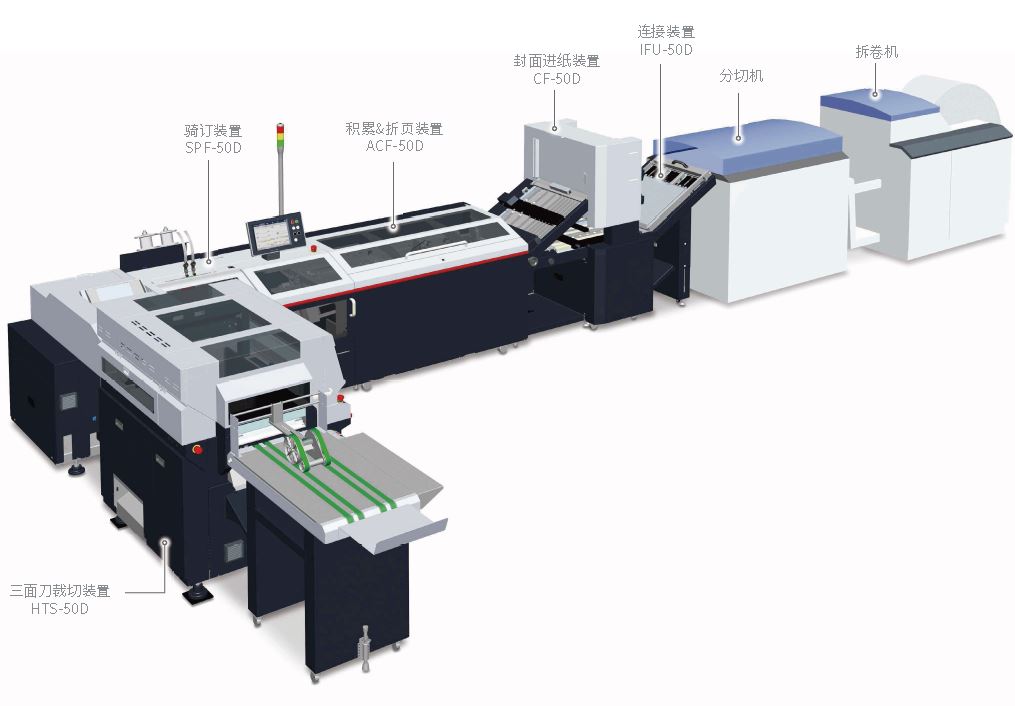 好利用卷到騎馬釘裝訂系統(tǒng),可實(shí)現(xiàn)高品質(zhì)書冊(cè)的高速生產(chǎn),速度達(dá)每小時(shí)6,000本。無(wú)需操作人員干預(yù)即可處理個(gè)性化與可變頁(yè)數(shù)應(yīng)用,在線確保書本的完整性。選配的封面進(jìn)紙器 CF-50D 可靈活地在書